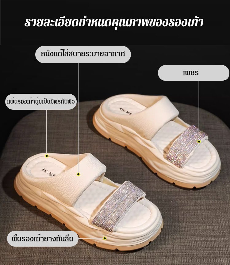 รองเท้าแตะเพิ่มความสูงติดเพชรกระพริบ