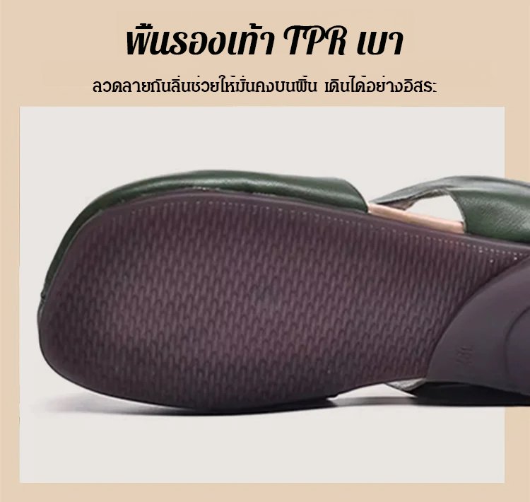 【หนังวัวชั้นแรก】รองเท้าแตะผู้หญิงแบบหัวปิด เปิดส้น